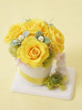 元気な黄色のバラと、リンゴをかかえたうさぎが、とってもキュートで見ているだけで笑顔になれそう♪