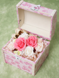 当店のイタリア人スタッフデザインの、「Scatola di gioiello~宝石箱~」は、まるでバラが宝箱に入ったようなアレンジメントです。